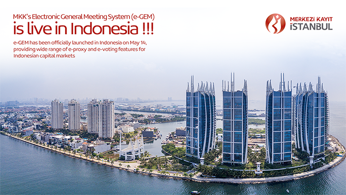 In 2017, the Indonesia Central Securities Depository (KSEI) opened a tender for the implementation of electronic general meetings, e-voting and e-proxy processess to Indonesian capital markets. Being chosen as the best system provider, MKK completed the implementation of the electronic general meeting system customized for KSEI within the pre-determined deadlines before 2018 year-end. Completing the legal infrastructure in Indonesia and working on further system developments between 2019 and 2020, the system officially went live on 14 May 2020, with the organization of 5 concurrent electronic meetings on the same day.