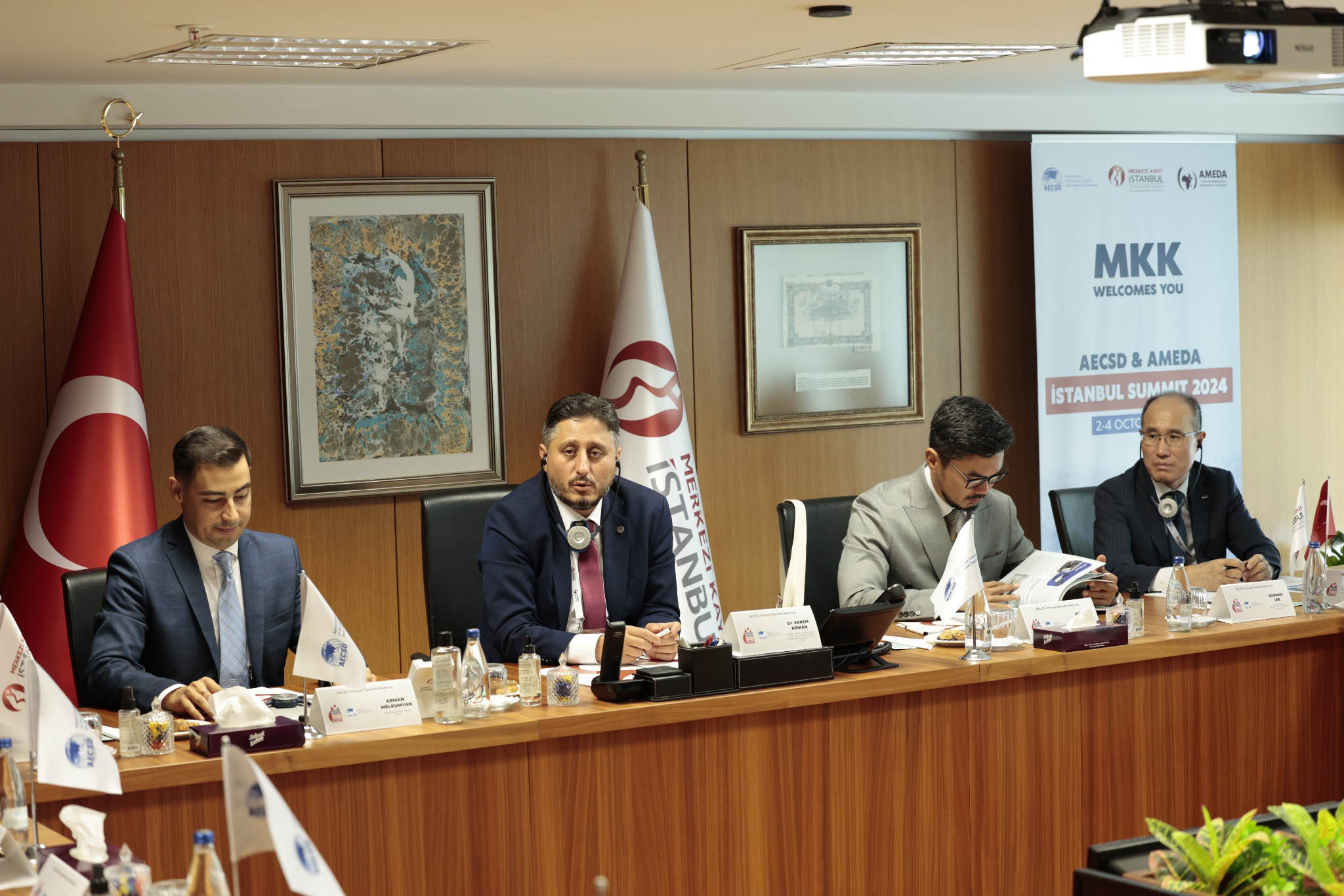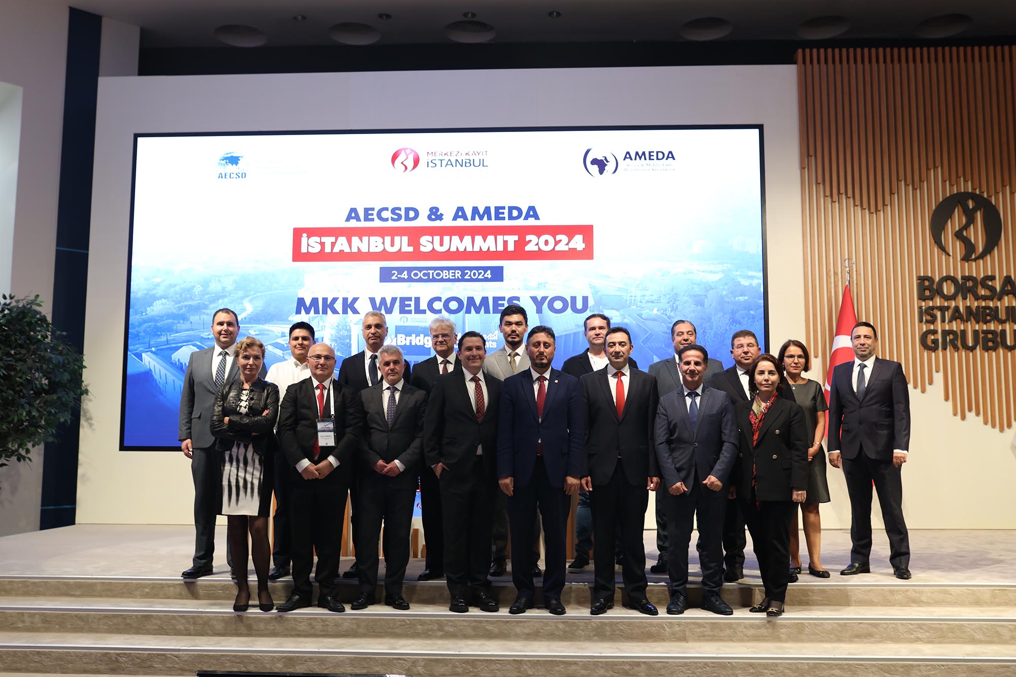 The first day of the AECSD (Association of Eurasian Central Securities Depositories) & AMEDA (Africa and Middle East Depositories Association) İstanbul Summit 2024, hosted by Merkezi Kayıt Kuruluşu (MKK), concluded with the AECSD and AMEDA General Meetings, along with the World Forum of CSDs (WFC) Board of Directors Meeting, held at the Borsa İstanbul Group premises.