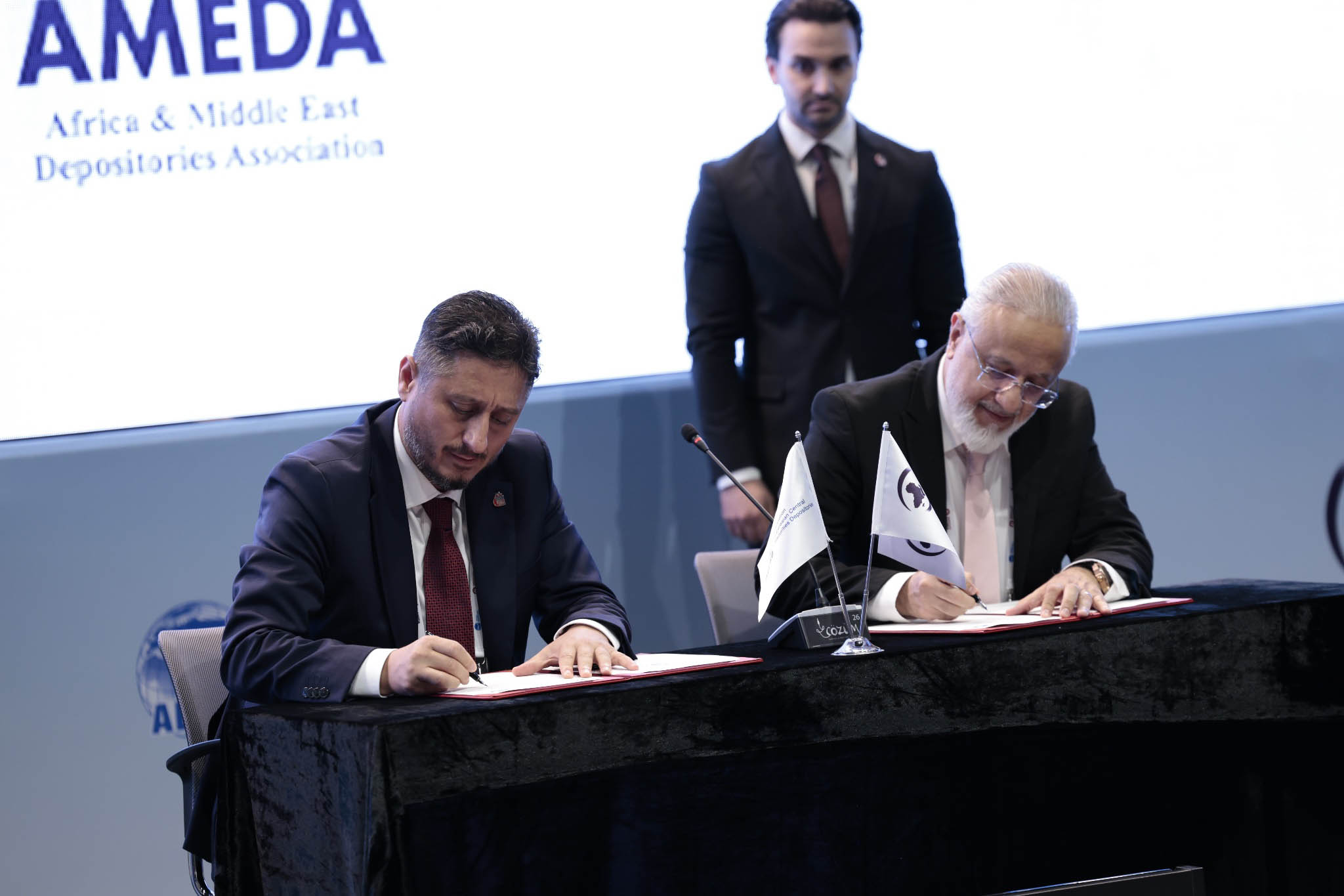 During the ceremony, two significant Memorandums of Understanding (MoUs) were signed. The first was between AECSD and AMEDA, aiming to enhance cooperation and information exchange. It was signed by AECSD Chairman, Dr. ARIKAN, and AMEDA President, Mr. ABDIN.